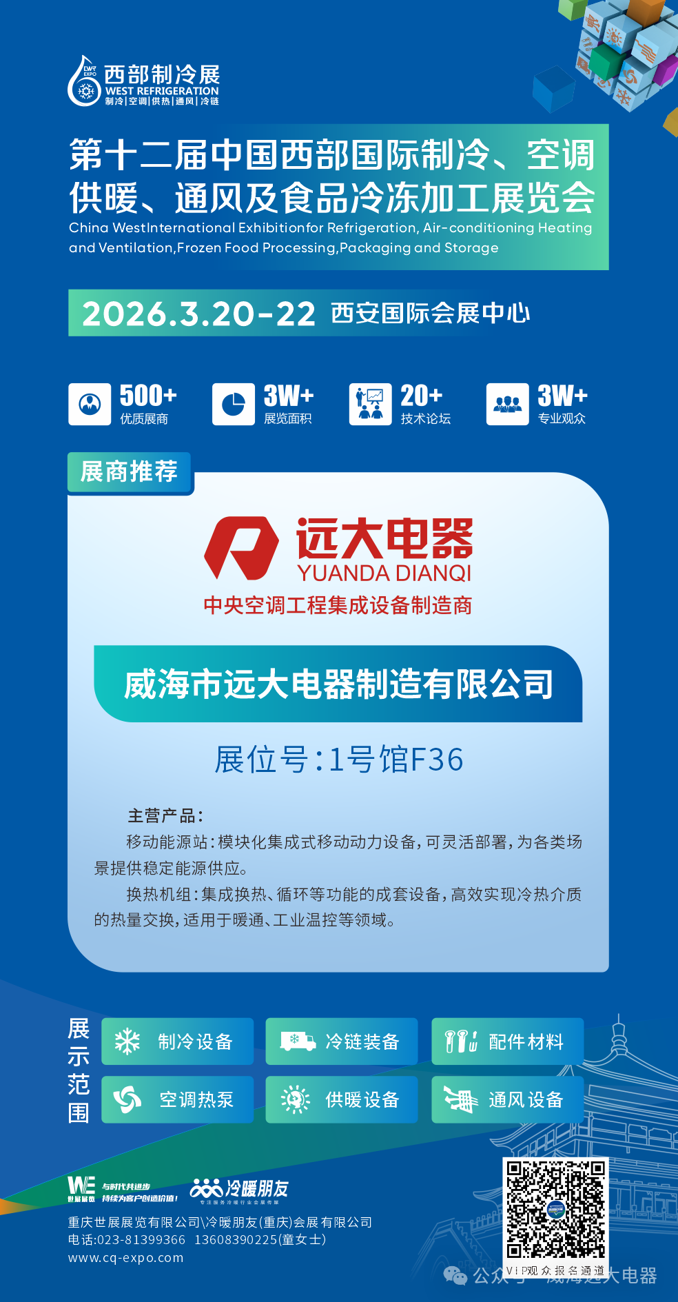 3月20-22日,威海远大与您相约2026第十二届西部国际制冷展